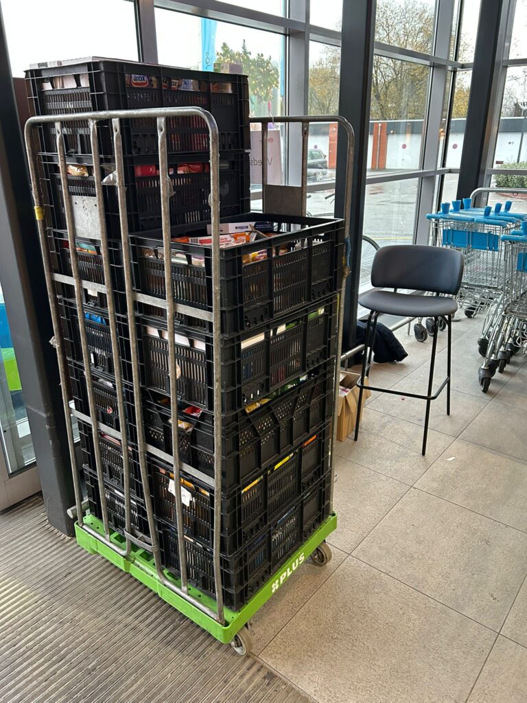 De kratten stroomden vol met producten van uiteenlopende aard.